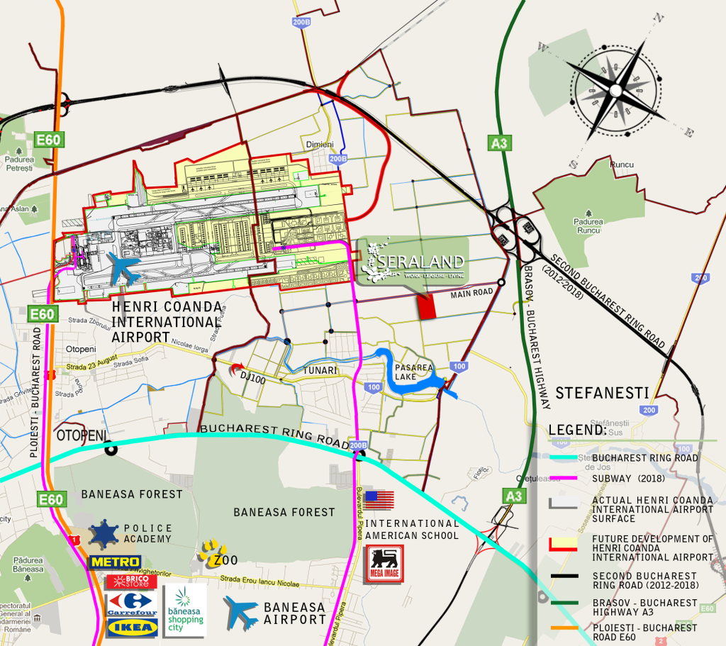 Seraland 10ha property, being positioned between the Bucharest Henri Coanda International Airport Terminal, the main crossover of the A3 Bucharest – Brasov highway and the Bucharest North ring-road, is perfectly located for its development purpose.